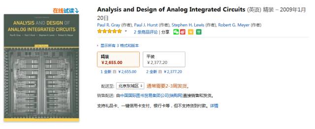 此书工程性很强,适合有一定CMOS模电理论基础的人读。书中很多公式横空出世,叫人初看之下摸不着头脑,所以不太适合初学者。该书最大的特点是从正向介绍和讲述电路的设计,关于运算放大器的设计是该书最精彩的部分,可以使很多人的思维从分析电路转换到设计电路。