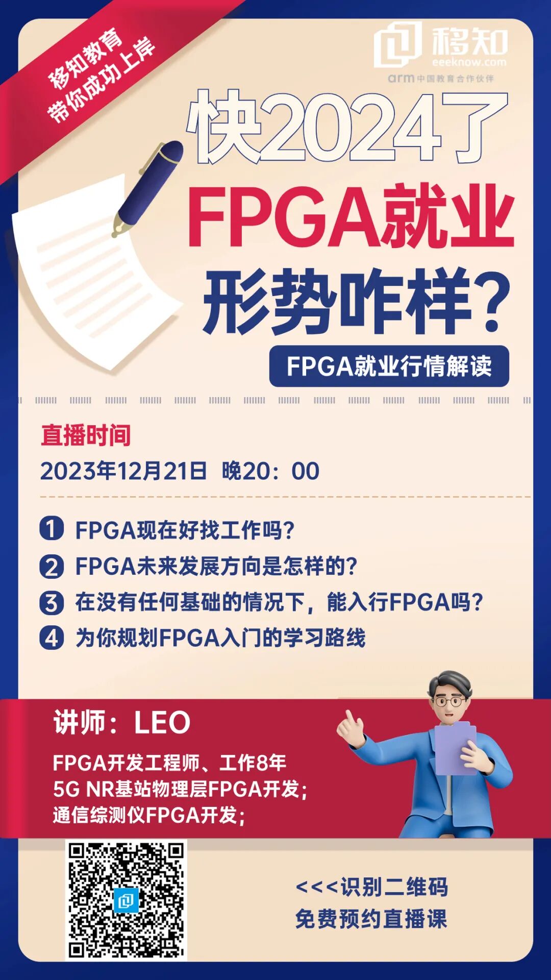 为了让更多的人了解并正确认知FPGA当前就业形势及学习路径,我们12月21日20:00,移知特邀请国内一线FPGA工程师LEO老师,举办《快2024了,FPGA目前就业形势咋样?》免费公开课,解读当下FPGA的就业形势,还为特别选出知乎热点问题,为大家答疑解惑。大家也可提前准备好相关问题进行咨询。