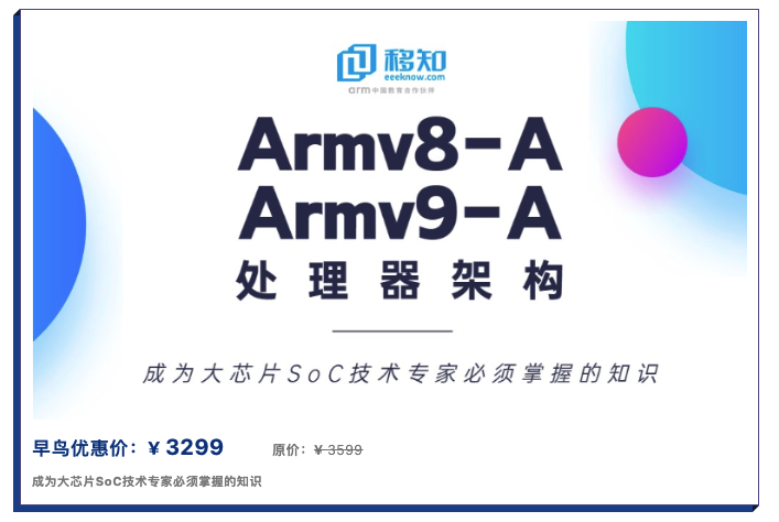 Armv8-A和Armv9-A架构在一些性能要求较高的SoC使用广泛,但由于其架构的复杂性,以及对技术能力要求较高,理解整个Armv8-A和Armv9-A架构SoC难度较大,因此掌握Armv8-A和Armv9-A处理器架构及其SoC实现是对自身技术水平的极大提升。