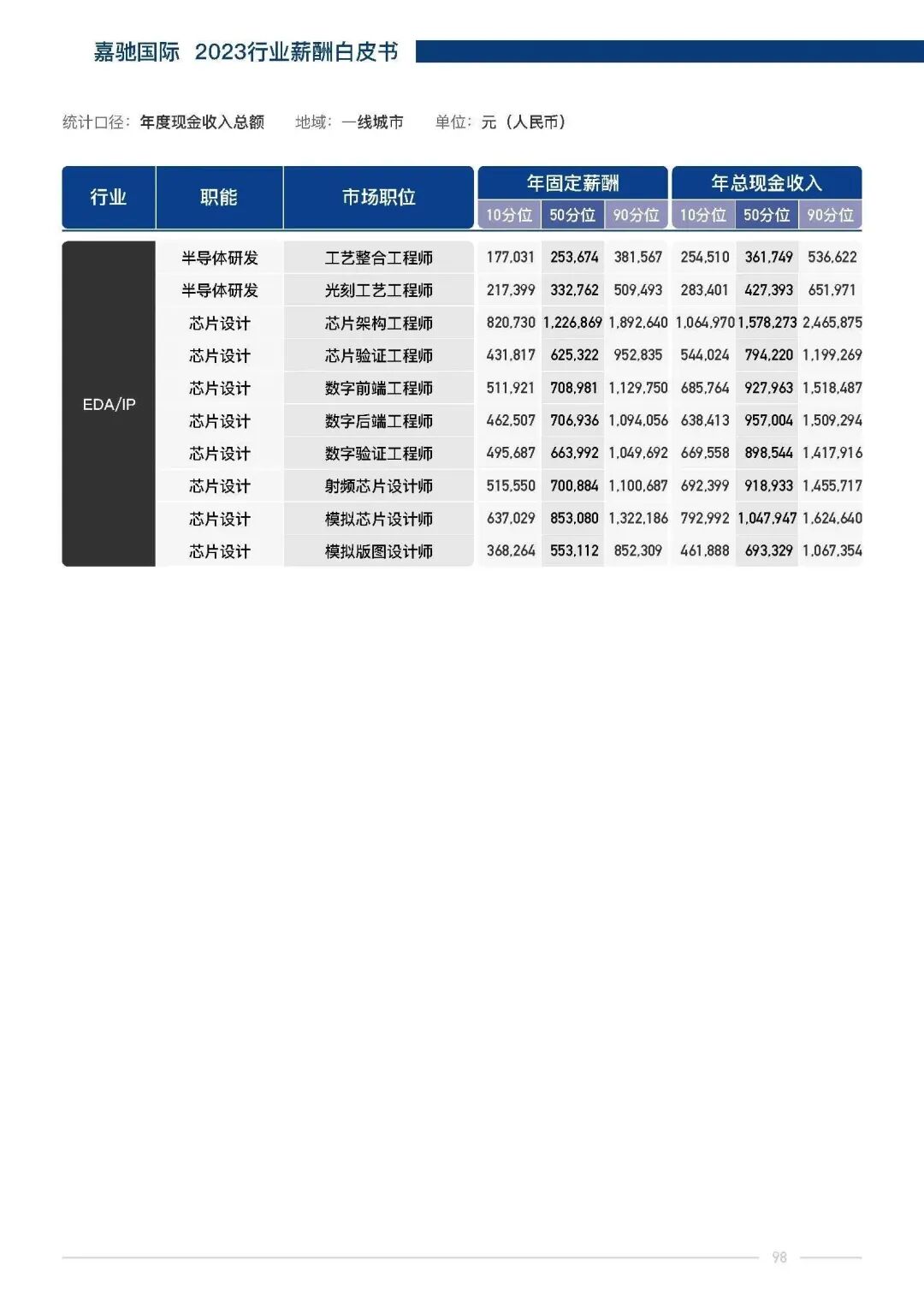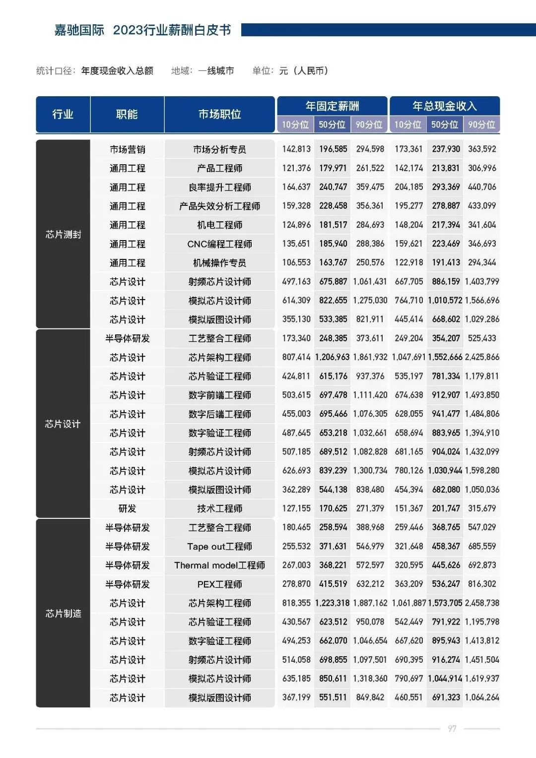 面对市场以及行业大环境的变化,薪酬管理更在吸引人才、管理人才方面发挥着不可替代的作用,也是企业降本增效的关键之一。某知名机构发布的《2023行业薪酬白皮书》让薪酬管理有据可依、有章可循。大量资本的涌入使得国内半导体芯片领域,研发类芯片公司兴起,有限的顶端研发人才受到追捧。及时了解行业薪资情况,掌握第一手资料,才能做好入行谈薪资准备。