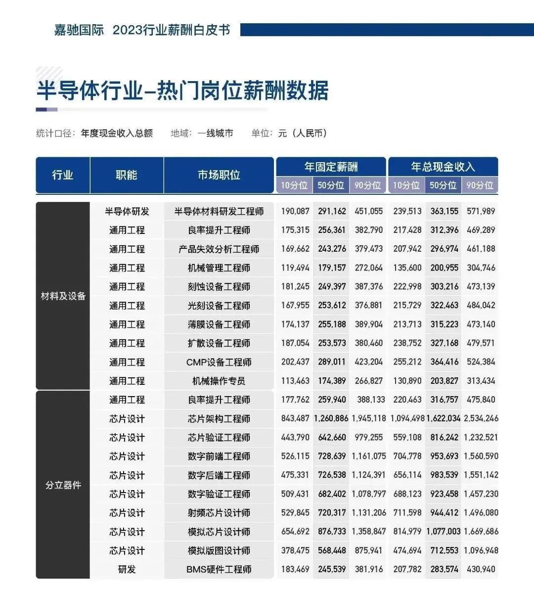 面对市场以及行业大环境的变化,薪酬管理更在吸引人才、管理人才方面发挥着不可替代的作用,也是企业降本增效的关键之一。某知名机构发布的《2023行业薪酬白皮书》让薪酬管理有据可依、有章可循。大量资本的涌入使得国内半导体芯片领域,研发类芯片公司兴起,有限的顶端研发人才受到追捧。及时了解行业薪资情况,掌握第一手资料,才能做好入行谈薪资准备。